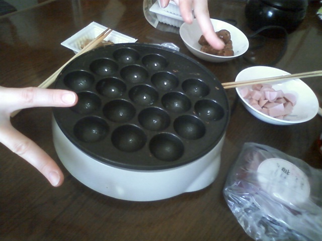 osa宅で、樹理ぃも一緒にたこ焼きパーティ。