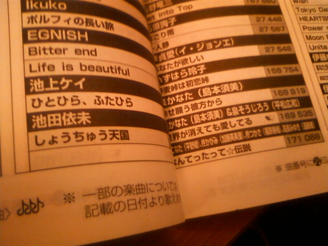 カラオケの歌本で、