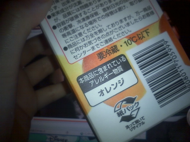 … オレンジアレルギー持ってるひとが、オレンジジュース買うか。