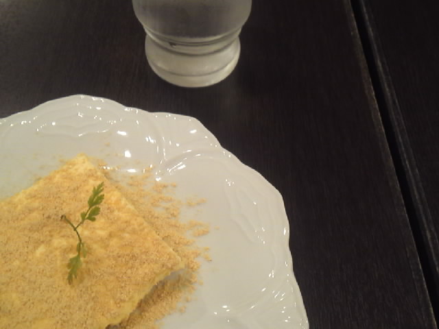 ココアパウダーのかわりに、黄粉がまぶしてあるティラミス。