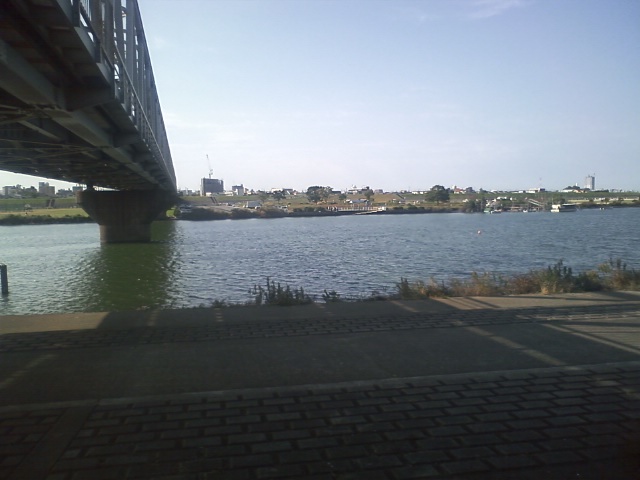 一組のカップル、川べりで作業をしている仕事人、犬の散歩をする人×2、自転車で通り過ぎるおっちゃん×4、徒歩で通り過ぎるおっちゃん×3、
